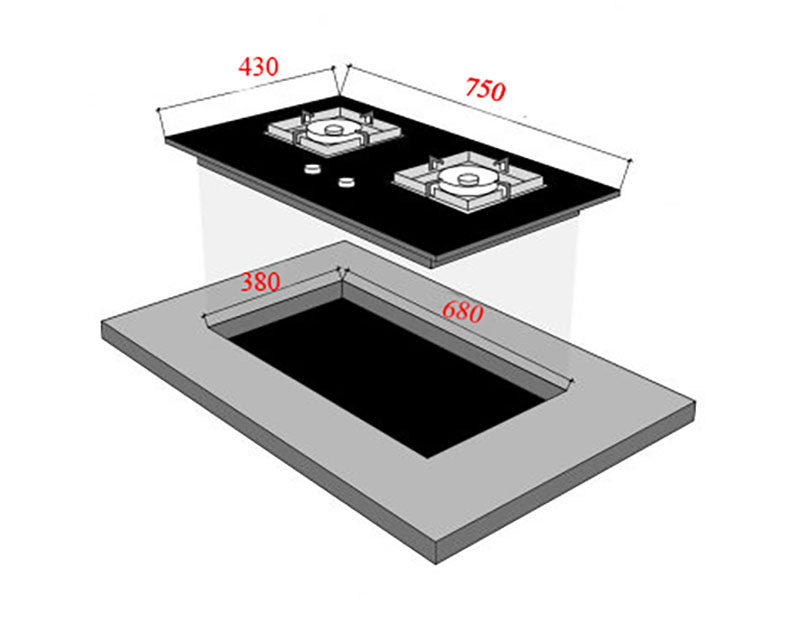 - Kích thước bếp: 750R x 430S mm