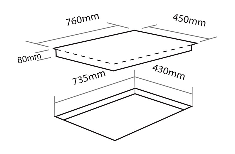 | Kích thước bếp (DxR) | 760*450mm |