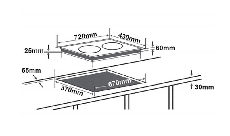 | Kích thước khoét đá | 670×370 mm |