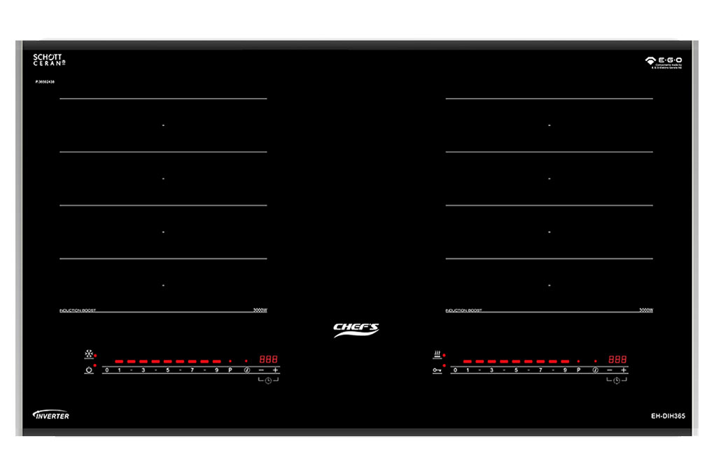 Bếp từ đôi EH-DIH365 sử dụng bộ linh kiện sản xuất tại nhà máy E.G.O – Đức, được đóng gói và QC tại nhà máy Chef’s Việt Nam theo tiêu chuẩn công nghệ Châu Âu giúp sản phẩm có giá cạnh tranh nhưng vẫn đảm bảo về chất lượng.