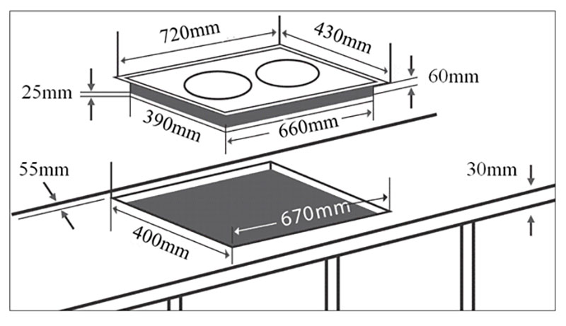 | Kích thước khoét đá | 670×400 mm |