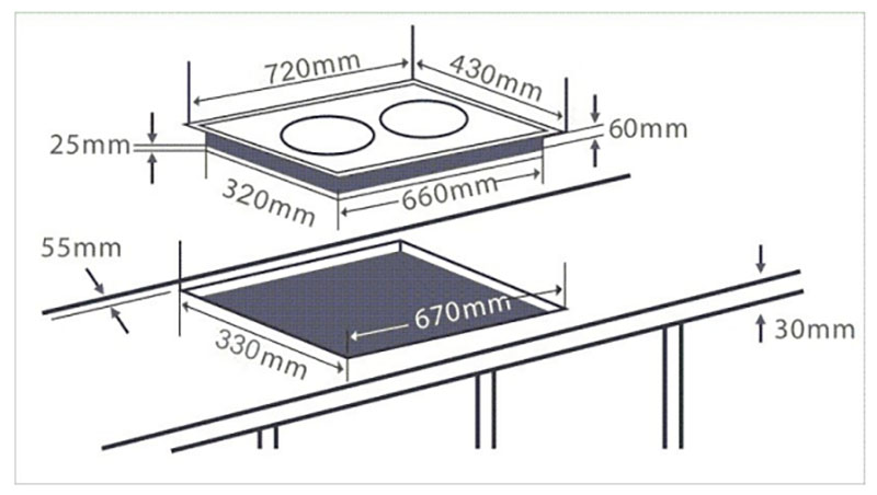 | Kích thước khoét đá | 670×330 mm |
