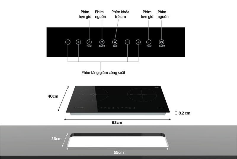 Kích thước mặt bếp: 680 x 400mm