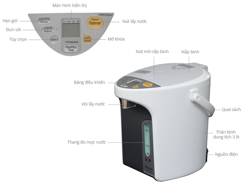 Bình thủy điện Panasonic có chế độ pha trà tự động
