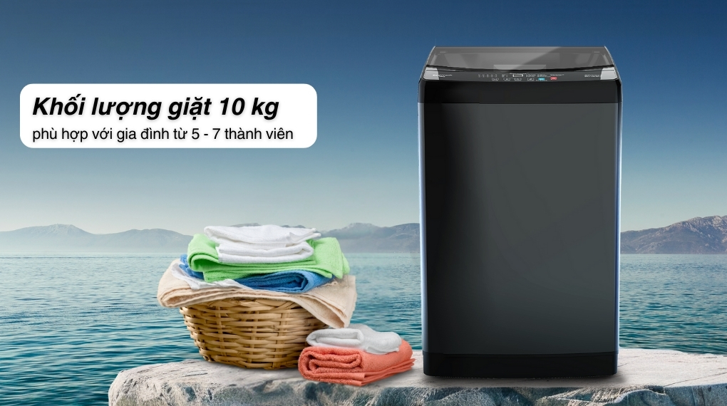 – Khối lượng giặt tối đa10 kg, phù hợp với gia đình từ 5 – 7 thành viên hoặc gia đình có ít thành viên hơn nhưng có nhu cầu giặt giũ cao.