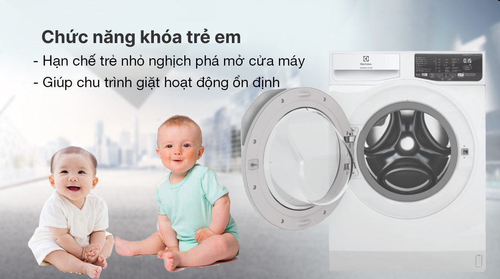–Khóa trẻ em: Tránh trẻ nhỏ nghịch phá mở cửa máy hoặc điều chỉnh chức năng trên bảng điều khiển trong khimáy giặt Electrolux Inverterđang hoạt động, nhờ đóbảo vệ an toàncho trẻ vàđảm bảo cho chu trình giặt giũ diễn ra trơn trumà không bị gián đoạn.