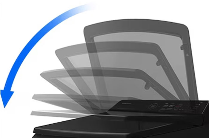 Thiết kế cửa đóng siêu êm giúp giảm thiểu tiếng ồn khi đóng/mở nắp máy giặt, mang lại trải nghiệm sử dụng nhẹ nhàng và tiện lợi hơn.