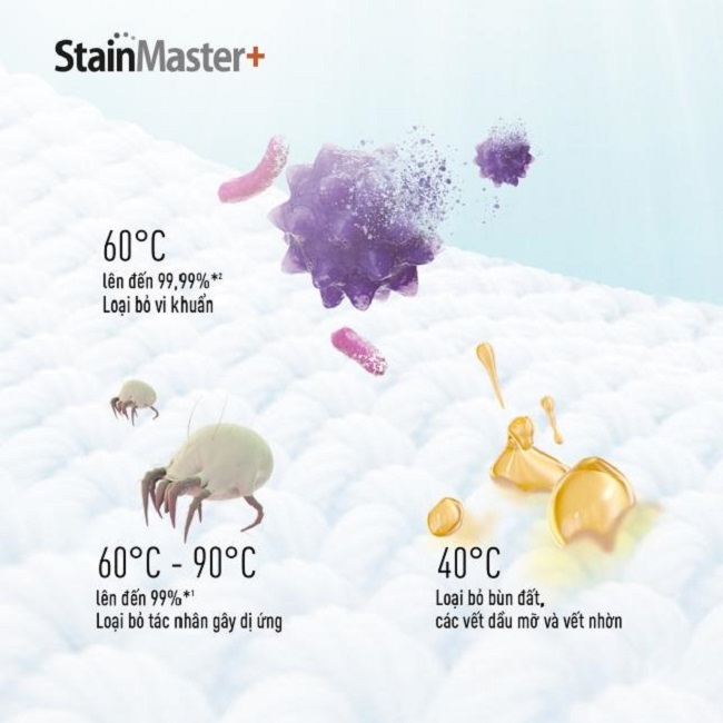 Loại bỏ tác nhân gây dị ứng và vết bẩn cứng đầu nhờ tính năng giặt nước nóng
