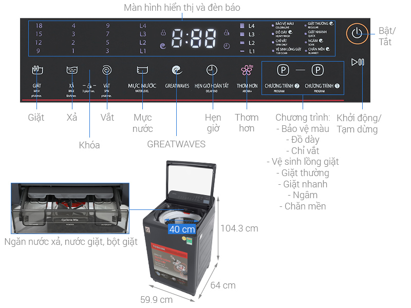 - Nâng cao hiệu quả giặt sạch với lượng nước tối ưu