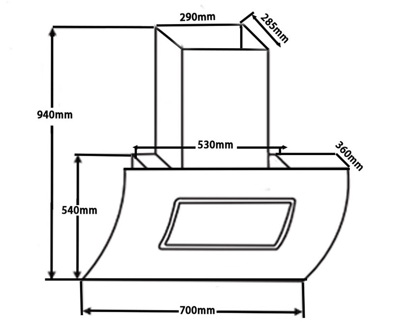 Máy hút mùi EH-R706E7D có thiết kế dạng kính vát sang trọng độc đáo. Hút màu đen cho gian bếp thêm sang trọng, thẩm mỹ.