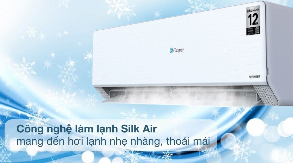 –Máy lạnh Casper 1.5 HPtrang bị công nghệ Silk Aircó khả năng đánh tơi khí mềm nhờ có phần cánh vẫy với thiết kế 1789 lỗ khí nhỏ li ti, nhờ đó khí lạnh được tỏa ra một cách nhẹ nhàng, mang đến không gian dễ chịu.