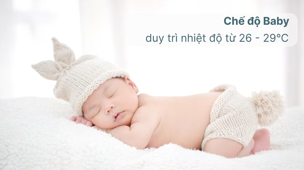 –Chế độ Babykhi sử dụng sẽ duy trì nhiệt độ dao động trong mức từ 26 – 29℃, tạo luồng khí mát êm dịu đưa trẻ em vào giấc ngủ ngon và thức dậy sảng khoái.