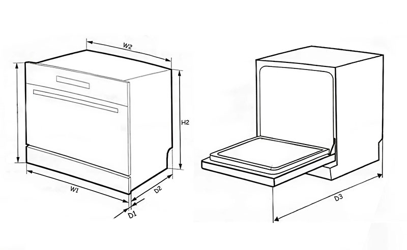 Máy rửa bát 10 bộ Chef’s EH-DW408DB có kích thước 595x595x500mm, gam màu đen sang trọng, có thể lắp đặt độc lập, để bàn hoặc âm tủ phù hợp với nhiều không gian bếp.