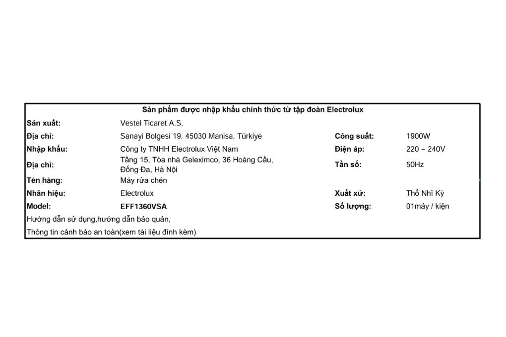 Máy rửa bát độc lập Electrolux EFF1360VSA