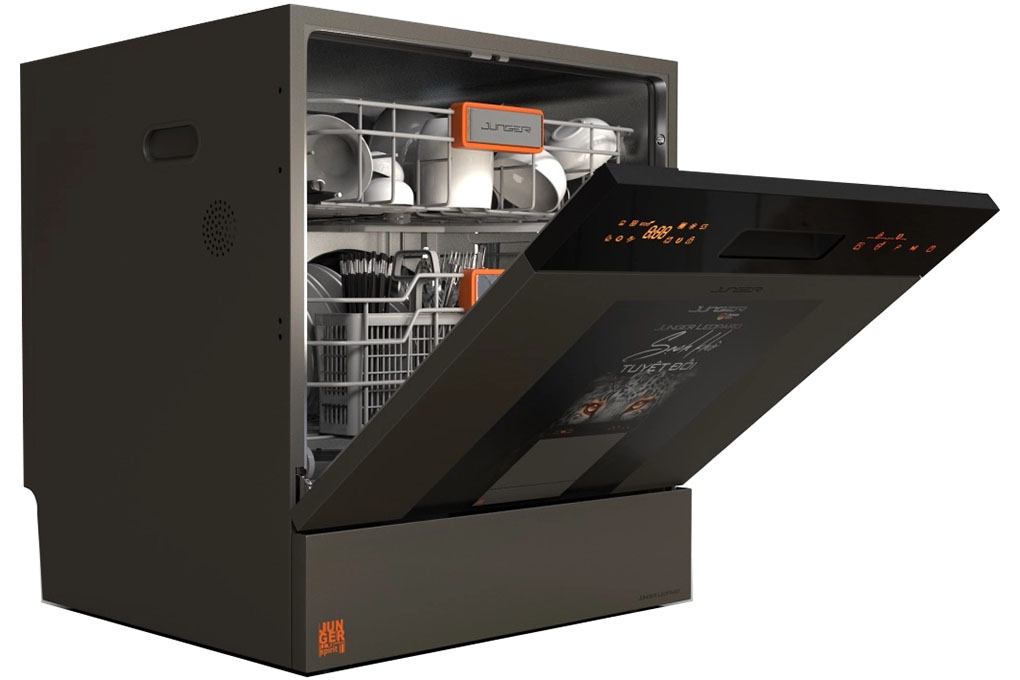 - Junger Super AI Cleaning: Công nghệ AI tự động nhận diện độ bẩn và điều chỉnh thời gian, lượng nước cho từng mức độ bẩn của bát đĩa, tiết kiệm đến 30% năng lượng và nước.