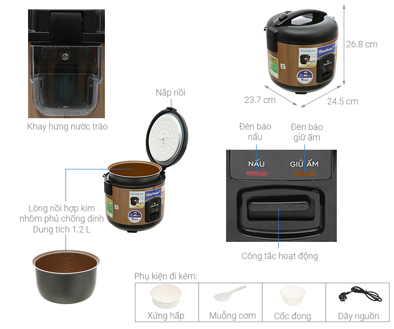 Tiện ích: Có xửng hấp Tự động ngắt khi quá nhiệt