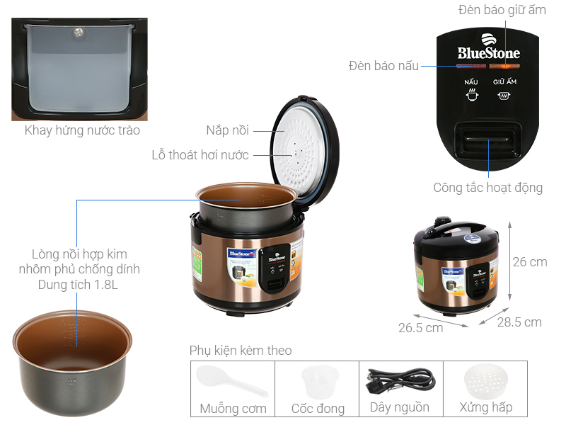 – Phụ kiện: xửng hấp, muỗng múc cơm, cốc đong.