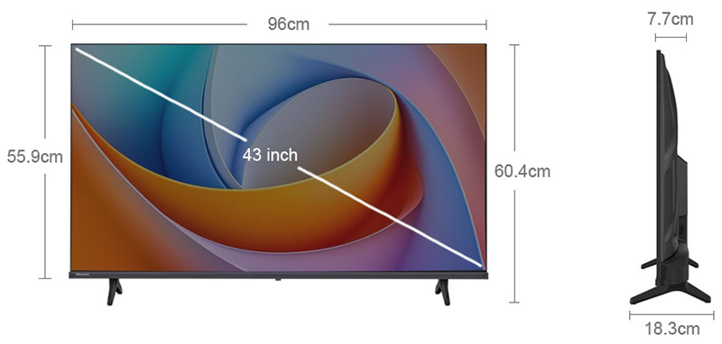 Kích thước không chân, treo tường: Ngang 96 cm – Cao 55.9 cm – Dày 7.7 cm