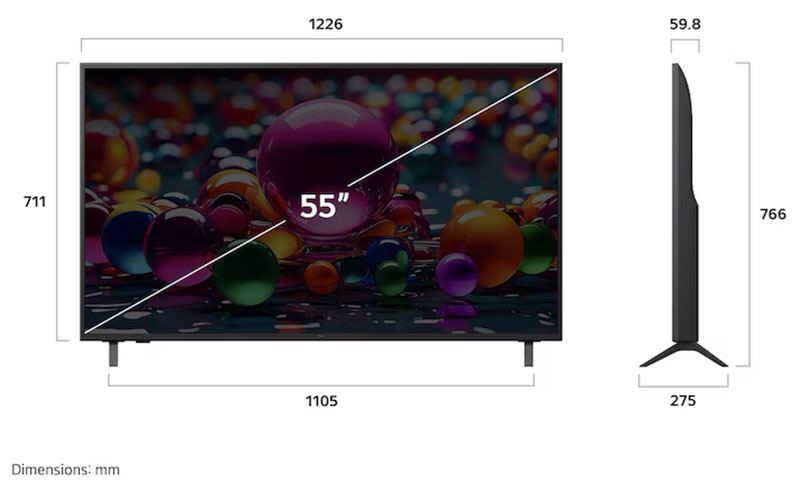 | Kích thước không chân, treo tường | 123.6 x 71.8 x 6.79 cm |