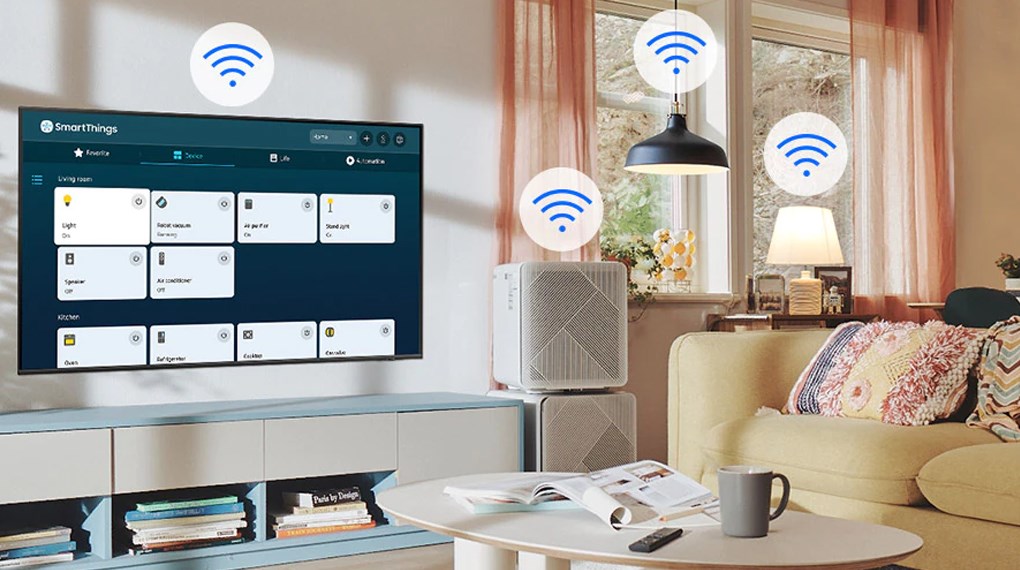 – Điều khiển tivi bằng điện thoại qua ứng dụng SmartThings.