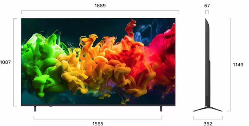 Kích thước không chân, treo tường: Ngang 188.9 cm – Cao 108.7 cm – Dày 6.7 cm