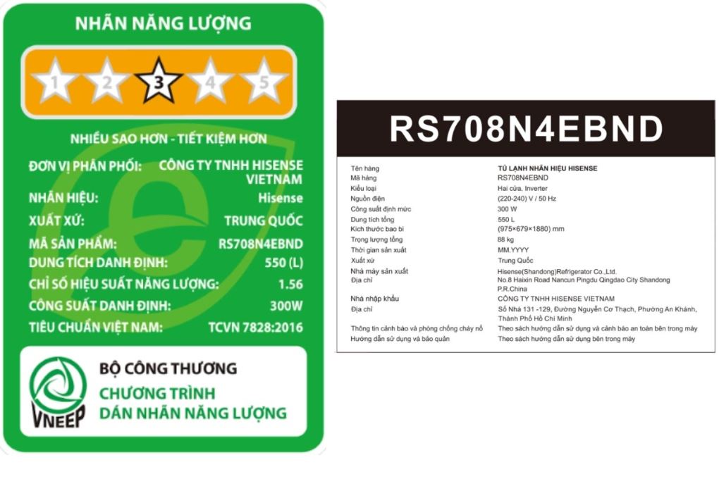 Thông số kỹ thuật Tủ lạnh Hisense Inverter 550 lít Side By Side RS708N4EBND