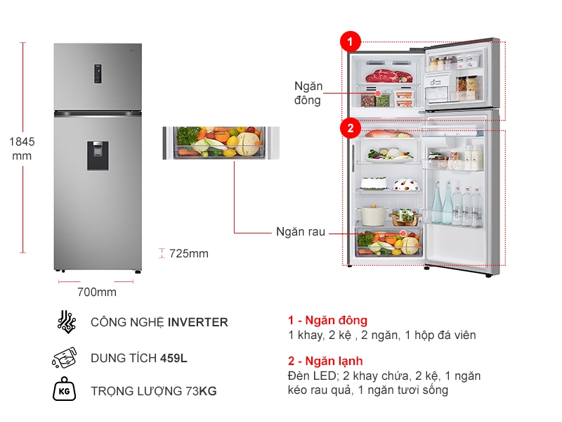 Dung tích sử dụng: 459 lít – 4 – 5 người